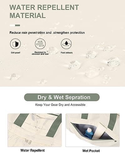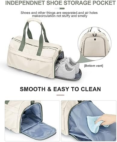 【Waterproof & Dry Wet Pocket】The bag is made from high-density waterproof material to repel water and keep the contents inside dry. The bag has a compartment designed specifically for separating dry items from wet ones like wet clothes or towels