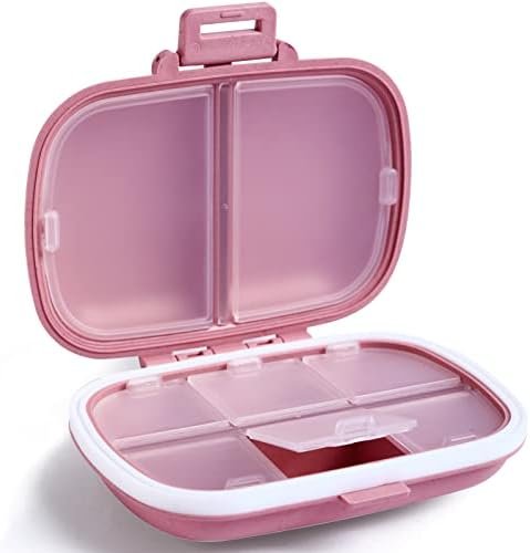 Large Capacity: The daily pill organizer has 8 compartments (6+2), 6 small chambers for little pills and 2 large chambers for vitamins. Pills of different sizes are placed in compartments of different sizes.