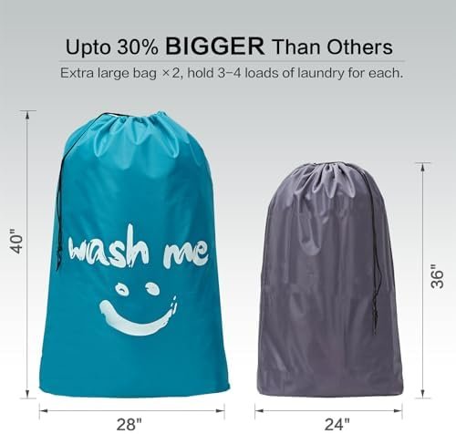 ULTRA LARGE CAPACITY – Sized 28 x 40 inches. This size is big enough for holding 3-4 loads of laundry for each, making it ideal for travel storage in college dorms or for family use