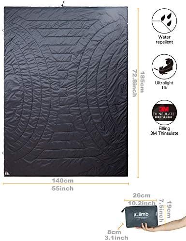 Ultralight, only 16 oz; Compact, Packed size 10.2” × 7.5” × 3.1”; Large enough for big guys, unfold size 6’1” × 4’7”; Carry bag is attached to the blanket, it won’t get lost, easy to carry everywhere. The blanket packs into its own pocket (Carry bag).