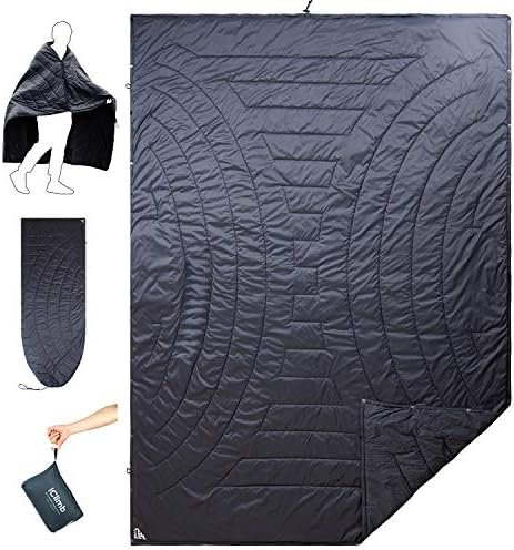 Multifunctional. With the buttons and elastic straps, this blanket can be used as quilt, poncho, shawl, temporary sleeping bag. You can also put two blankets together and make it one two-person sleeping bag. Keeping you cozy while sitting around the fire or on your couch, lying in hammocks, reading books, tailgating, cooking meals. Perfect for camping, backpacking, hiking, mountaineering, traveling, lounging, picnics, beach trips, concert events, airplane trips, and other outdoor activities.