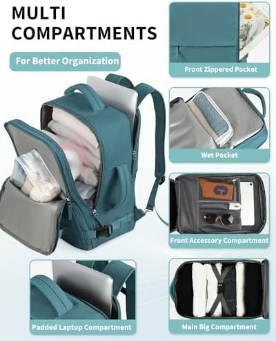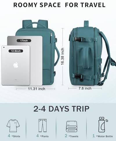 【Roomy and Organized】With size 16.38*11.31*7.8”, Falark travel backpack for women provides 35L capacity that can easily store 3-4 days outfits, and the “X” clip in main compartment will keep your stuff from moving around. Various pockets of this traveling backpack allows you to stay organized and the thick padded laptop pocket will protects your device nicely and fits laptop up to 17inch