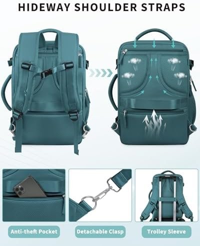 【Multi Carry Ways】 FALARK backpack for travel is equipped with a shoulder strap pocket that you can easily hide the shoulder strap in it to avoid the straps getting dirty when going through airport security or put on the ground. The handle on the side and the top makes it possible to carry the traveling backpack like a briefcase and easily grabbed from under the seat