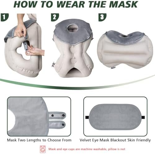 ✈Soft Surface as Feathery Mask: The inflatable neck pillow set includ crystal suede cover and eye mask, plus earplugs and a portable storage bag, detachable, machine-washable. Provide max softness and comfort for your face, preventing skin impressions. The fatigue of a long flight will be effectively relieved by the feathery touch,allowing body relax very easily, get the state of rest, have a high-quality sleep and sweet dreams.