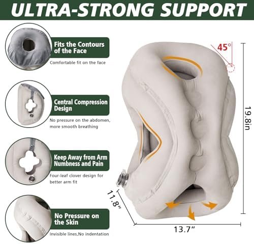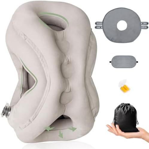 ✈Lightning-Fast Inflation: This inflatable pillow is equipped with upgraded two-in-one air valve, breath only 3-5 times to inflation until the desired firmness is achieved, it’s easy to inflate even women or elderly.The size is 13.7in*11.8in*19.8 in after blowing up, which fits better into airplane seats.Whether placed on a small table or leg, will not cause inconvenience to nearby passengers.Deflation only 2s after the transparent air valve opened The storage bag is palm size, easily securing it in your backpack or suitcase.