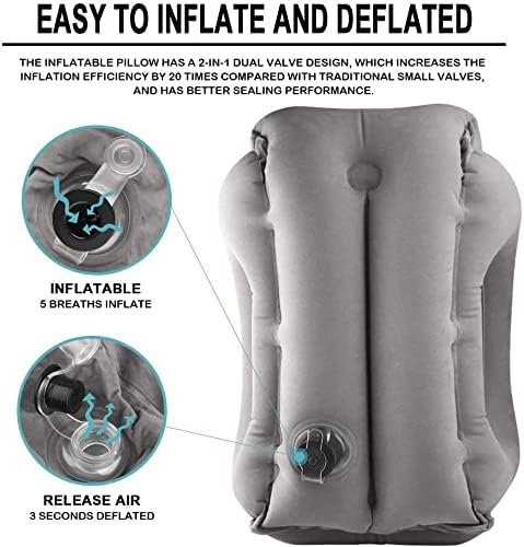 🛩️Fast inflation and deflation: The inflatable pillow has a 2-in-1 dual valve design, which increases the inflation efficiency by 20 times compared with traditional small valves, and can be filled in 5 seconds. And has better sealing performance.