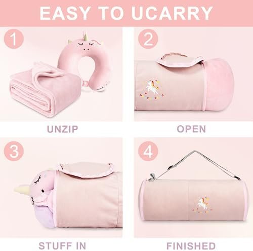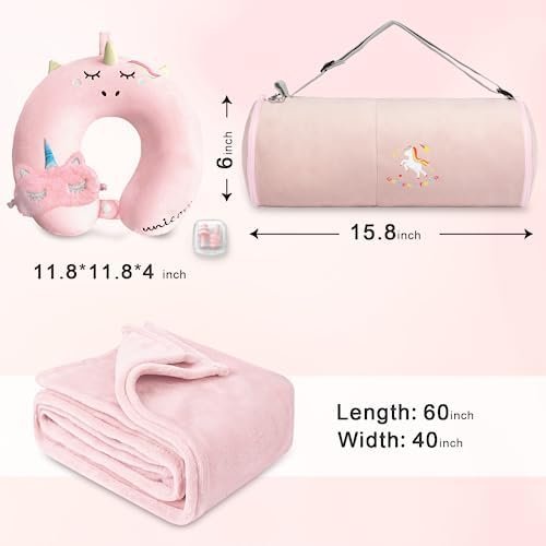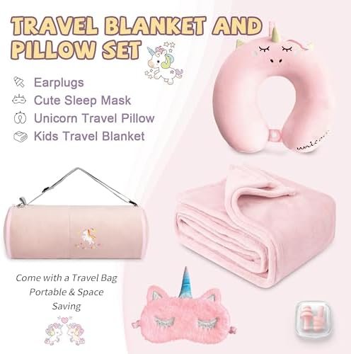 TRAVEL BLANKET AND PILLOW SET: You can get a blanket, and a cute unicorn travel pillow comes with a sleep mask and earplugs. Also, we designed a portable and packable travel bag for your kids. It’s a convenient and compact design that saves space while being easy to store and carry. You can use this travel set at home, road trip, train, or at any place. Available for adults and kids to use in the journey.