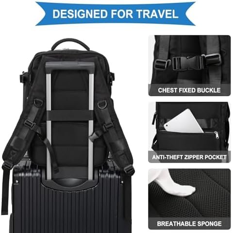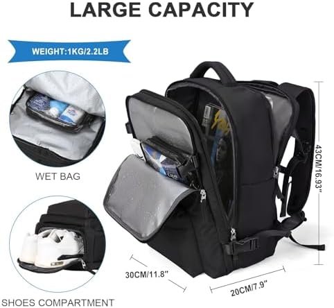 CONVENIENT DESIGN: The WAIEBFAF travel backpack has multiple compartments and pockets, main pocket x 2, laptop compartment x 2, and other pockets to keep all your essentials organized. The moisture-proof pocket is made of high-density waterproof material, which can help you separate dry items from wet ones, if you have wet clothes or towels, you can put them in the moisture-proof pocket. Separate shoe compartment can help you carry and store your shoes better in your travel bag.