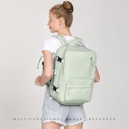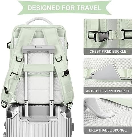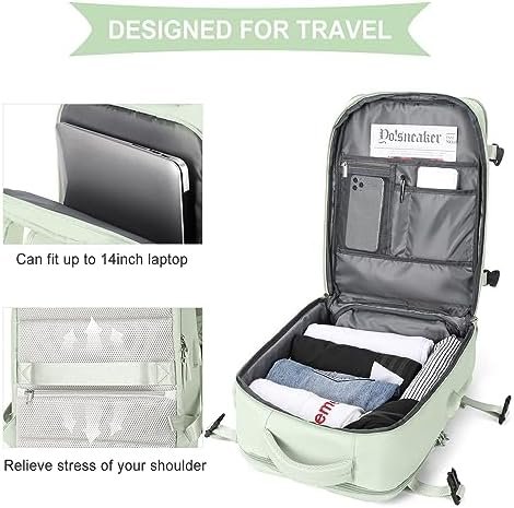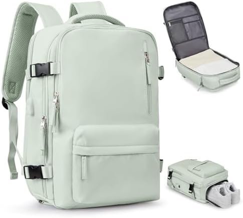 CONVENIENT DESIGN: The WAIEBFAF travel backpack has multiple compartments and pockets, main pocket x 2, laptop compartment x 2, and other pockets to keep all your essentials organized. The moisture-proof pocket is made of high-density waterproof material, which can help you separate dry items from wet ones, if you have wet clothes or towels, you can put them in the moisture-proof pocket. Separate shoe compartment can help you carry and store your shoes better in your travel bag.