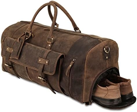 Leather Duffel Bag 28 inch Large Travel Bag Gym Sports Overnight Weekender Bag (Distressed Tan Shoe Pocket)
