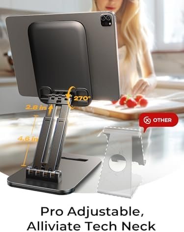 Folds flat for travel and holds whatever angles you need, Sturdy Durable Easy to Store and Compact 4.0in-15.9in office desk accessories iPad Stand for Desk Home Computer Accessories: We analyzed other stands that had very many tablets fall problems, so made product upgrades. Using the high-cost material one-piece design, all-metal alloy base, and innovative adjustment locking mechanism, 100% solution to the first-generation of tablet stand holder instability and adjustment slippage problem