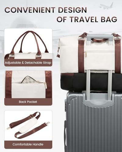đ§łăOvernight Bags for Women with Laptop CompartmentăThis large carry on bag holds 3-5 days of essentials with ease. Organize effortlessly with multiple pockets including a large main section with 4 internal pockets, 1 laptop compartment and a front pocket for quick access to electronics. Our duffle bag for travel caters to the modern woman’s travel needs. Find your ideal blend of style and function.