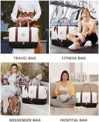 đăSpacious &Durable Travel Tote Bag with Shoe CompartmentăThe travel bags for women with toiletry bag to keep your cosmetics/toiletries organized on-the-go. Lightweight duffle bag women offers ample storage without weighing you down.With the separate shoe compartment to keep your shoes or laundry separate from clean items.Ideal for new moms, this tote doubles as a diaper bag and even a hospital or medical bag. Don’t miss out on this versatile travel essential