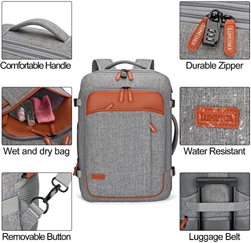 LARGE CAPACITY & EXPANDABLE:This extra large travel backpack with expandable feature offers you more packing capacity up to 40L.Unzipping to get larger storage space then can easily hold packing cubes, make-up bag, outfits, camera bag and gear for 3~7 days of travel.The carry on backpack fits overhead and under seat while on state of standard carry on size, is ideal for men, women, weekend traveler, or occasional vacationer.