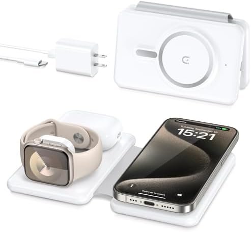 【The Apple charging station for multiple devices】The Magsafe travel charger is specifically designed to be compatible with MagSafe chargers. The magnetic suction is suitable for iPhone 16 15 14/16 15 14 Pro/16 15 14 Plus/16 15 14 Pro Max/ iPhone 13 12 /13 12 Pro/13 12 Pro Max. It is also compatible with Apple Watch 9 8 7 6 5 4 3 2 Ultra 2 1 & AirPods pro 3 2(not for A2897, A1602) and other devices with wireless charging functions.