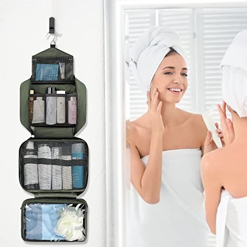 Multifuction And Hang For Easy Access – Our waterproof travel bathroom bag will not be more unpacked and mess up your countertop; Utilize the zip around design and the attached hanging hook to hang the shower bag on bathroom door, shower rod or towel rack for fast access to your hygiene products