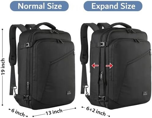 EXPANDABLE & LARGE CAPACITY: This extra large travel backpack with expandable feature offers you more packing capacity. Unzipping to get 40L storage then can easily hold packing cubes, make-up bag, outfits, camera bag and gear, etc. It fits overhead and under seat while on state of standard carry on size, is suitable for men, women, weekend traveler, or occasional vacationer. This versatile luggage backpack also meets airline carry-on requirements, for airlines such as Easy Jet, Spirit, Jet Blue