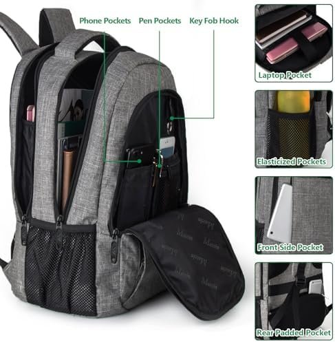 STURDY MATERIAL & SOLID: Made of Water Resistant and Sturdy Polyester Fabric with metal zippers. Ensure a secure & long-lasting usage everyday & weekend.Serve you well as professional office work bag,slim USB charging bagpack, back to college backpacks. 15.6 inch travel laptop backpack for daily using and organize