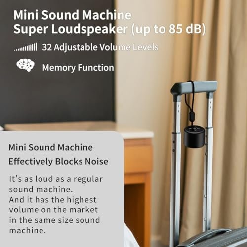 🔶【 Mini Yet Powerful】 This is the smallest white noise machine on the market but fully functional with 30 soothing sounds, 32 volume levels, rechargeable, auto-off timer, memory function and hanging rope. This mini sound machine is easy to fit into your travel bag or pocket, making it convenient to use at home, in the office, or on the go.