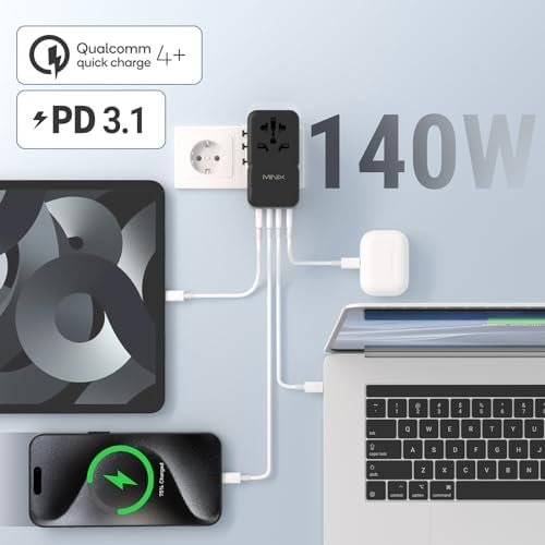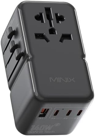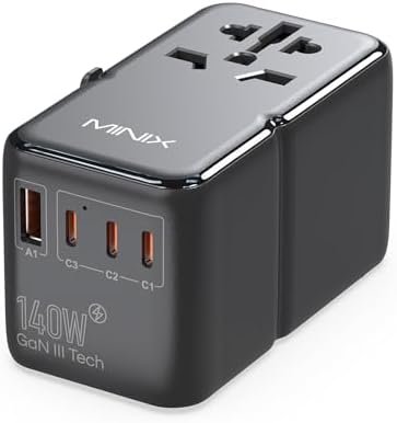 【140W GaN III Fast Charger】- MINIX’s 140W 4-Ports fast travel charger built-in 3 USB-C (PD 3.1), 1 USB-A (QC 4+),1 AC Port. Single using one USB-C port (C1/C2) can power up your MacBook Pro 16 to 55% in just 30 minutes.