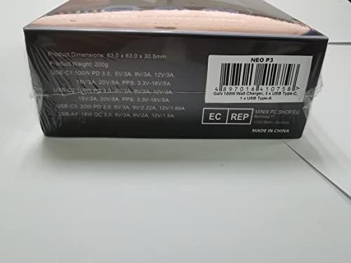 MINIX’s 100W Turbo 4-Port GaN Charger (MINIX NEO P3) consolidates multiple chargers into one, combining three USB-C ports (C1,C2 MAX 100W/ C3 Max 20W) and one USB-A ports (MAX 18W) in a sleek, palm-sized design. Total output 100W.