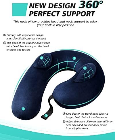 【Provides Perfect Support】Our neck pillow is ergonomically designed, unilateral lengthening, bilateral earlobes and 360° support for the head and neck. This travel neck pillow helps promote proper sleep posture with a normal neck curve, which can reduce neck pain and headaches and provide better quality sleep.