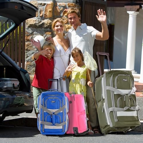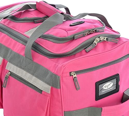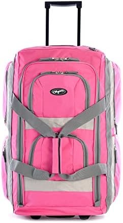 Olympia USA’s 8-pocket rolling duffel is the best duffel bag for any trip. It’s constructed of supreme polyester with metal ball-bearing in-line skate wheels for smooth rolling and a retractable hideaway handle with zipper closure for security. Its interior is designed for maximum organization and safety for all items, with a large main compartment and additional multi-use pockets.