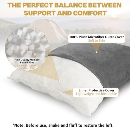 【Soft and Comfortable】Our memory foam Pillow made with high quality shredded memory foam wrapped in a soft cover, and the extra 100% high quality flannel pillow cover provide unlimited convenience for your use. Throw it in your backpack for your travel must haves!