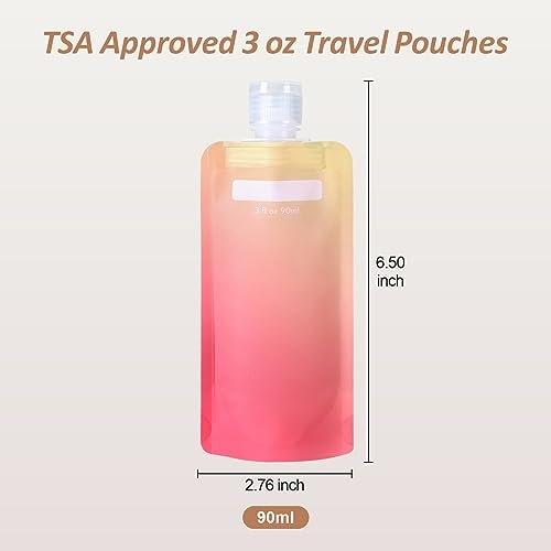 TSA Approved: Our travel liquid pouch is thoughtfully designed to comply with TSA regulations. With a capacity of 90ml (3oz), these travel-size containers meet the requirements for carrying liquids in your carry-on luggage. Enjoy bringing along a generous amount of your toiletries without any worries