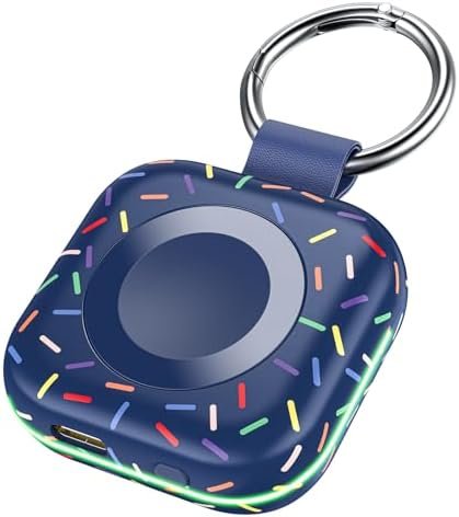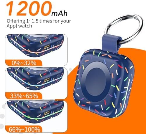 Mini Compact: The size of the cute keychain portable charger for apple watch is about the size of your watch.The comfortable frosted feel makes people love it.New indicator light design(0-30% Red Light,30%-60% Blue Light,60%-100% Green Light), fashion, keychain design,Convenient for all kinds of travel