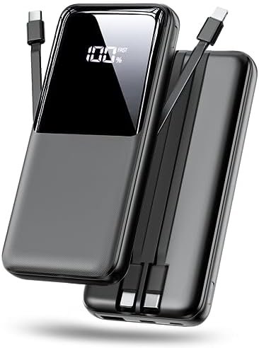 Portable Charger with 2 Built in Cables >>>: PB-08 battery pack has 1* iOS cable, 1* Type-C cable, 3* Charging ports(USB-A, Type-C, Micro), which supports charge almost all smart devices on market. Widely compatible with iPhone 16/15/14/13/12/11 series, iPad series, Samsung S23,S22,S21,S20 series, Google series and other smart cell phones, tablets or electronic devices. No need to carry various cables during the trip any more! (The adaptor not included)(Airline-approved)