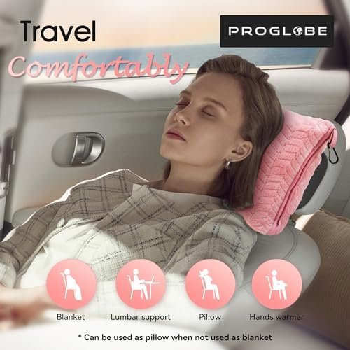 The Ultimate Travel Blanket: Experience unparalleled comfort with the Proglobe Premium Travel Blanket, your ideal lightweight and incredibly cozy partner for all seasons. Bid farewell to lackluster airline blankets as this generously sized blanket, measuring 63″ in length and 40″ in width, ensures warmth for both you and your travel companion. Perfect for various settings, including the car, bus, airplane, airport, campsite, and home.