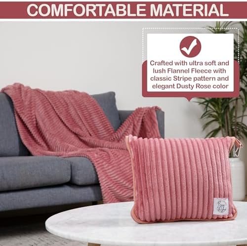 Warmth Wherever You Wander: Our Carefully Crafted fleece travel blanket is ultra soft and lush, This fuzzy airplane blanket features a beautiful dusty rose color with classic stripe pattern that provides the utmost coziness and comforting touch with warmness wherever you are. Our packable travel blanket is one of several traveling essentials that makes travel easier!