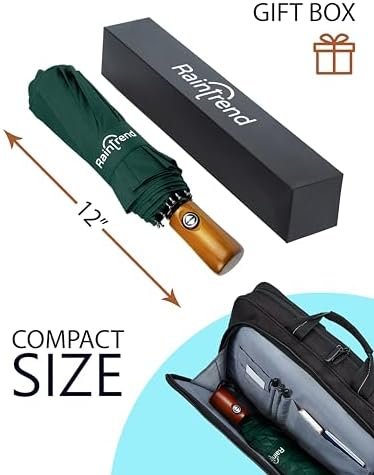 COLLAPSIBLE UMBRELLA Windproof Double Canopy is well-designed and elegant. Ergonomic wooden handle is of classic style. Size of the large umbrella man is perfect to cover up to 2 people to protect from rain!