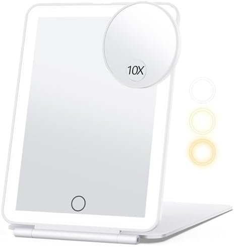 Extra round 10X magnifying mirror; package included a round 10x magnifying mirror, which let you see every detail clearly, ensuring every detail of your makeup is perfect, suitable for eyeliner, eyebrows, lipstick; 75-90 degree free rotation angle, you can easily find the vanity mirror angle you want