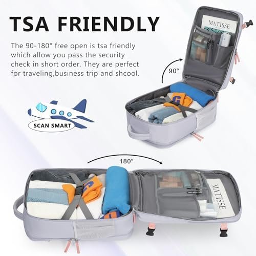 As Personal Items Approved by Most Airlnies: The carry on backpack measures 16.53 x 11.41 x 7.87 inches(L x W x D) and weights 2.5 pounds(1.14 kg). It meets airline personal-item requirements. The 90-180° open is TSA friendly