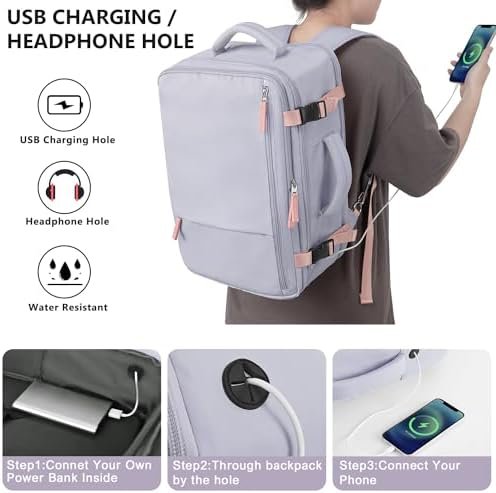 Charging Hole & Anti-Theft Design: The charging hole desgin allows data cable pass through, so you can charge your phone while walking. Also, the anti-theft pocket on the back of the womens backpack allow you to put phone, passport or wallet in it
