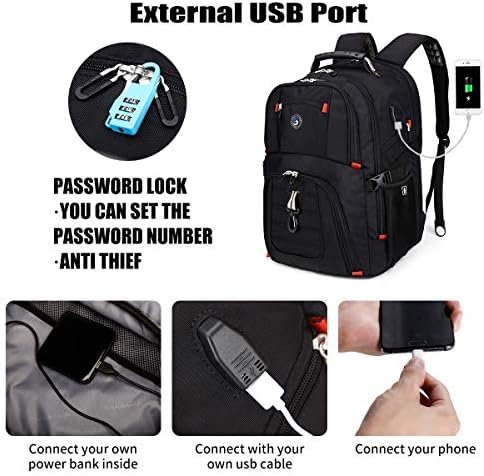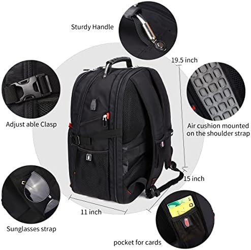 EXTRA LARGE and DURABLE MATERIAL: Size of extra large travel laptop backpack: 19.5x15x11 (inches), Capacity: 50L, separate padded laptop compartment hold for 13 inch MacBook, 14, 15, 15. 6 and up to 17inch Laptop backpack/computers for women men . The scan smart laptop backpack made from high quality material with nylon lining for better WATER RESISTANT and heavy duty backpack Large laptop backpack for the City