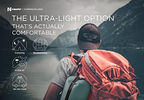 ✅EASY TO CARRY AND KEEP CLEAN: Nappler camping & travel pillow is very lightweight and comes with a carry case to keep it clean. The snap loop in the back of the pillow makes it easy to clip it to your luggage or hang it in the car.