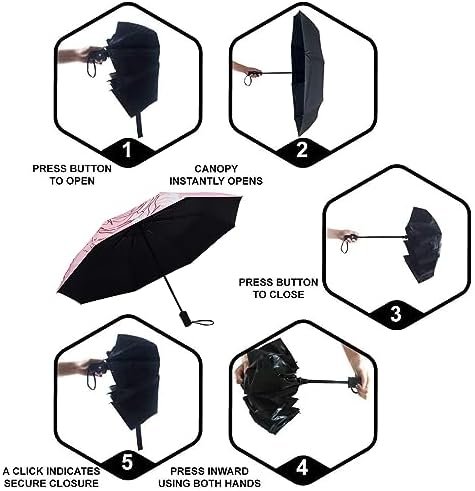 FULLY AUTOMATIC UMBRELLA: Auto open and close umbrella can handy for quick entry into a car, building or tent. You can quickly open or close the travel umbrella at the press of a button