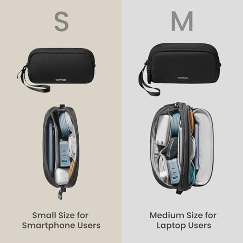 Convenient & Portable: Designed for portability, the tomtoc tech and travel pouch keep your essentials organized and within reach, fitting seamlessly into a backpack, tote, or handbag, and can stand upright on a desk to grab items easily