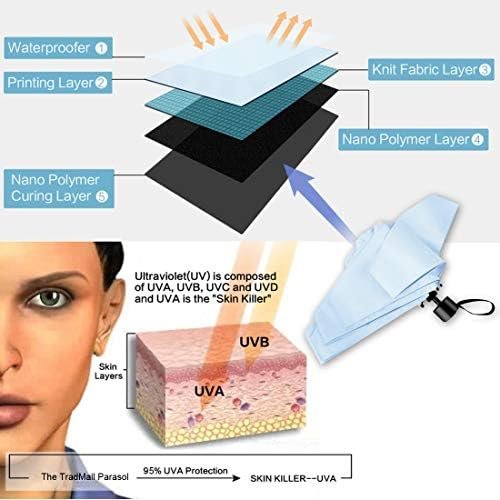 COMPACT & LIGHTWEIGHT: The handle is comfortable to hold; It is pretty, but sturdy enough to handle rain and some wind; The size and weight are perfect for travel and fits in your small purse or backpack