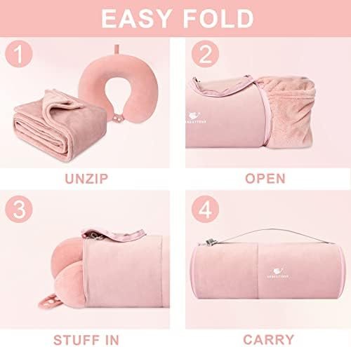 Perfect travel essentials: The travel pillow and blanket set comes with a duffel bag with a hiking clasp that allows you to clip the travel neck pillow and airplane blanket securely to your backpack, suitcase, or hand luggage, freeing up your hands!