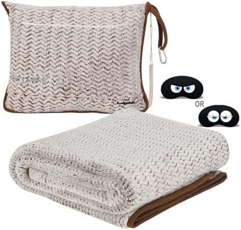 2 IN 1 TRAVEL BLANKET: The warm travel pillow and blanket set adopts 2 in 1 design, lightweight and compact, we can use it as a pillow or blanket as we need. When folded, it is a practical pillow to rest your head, and when unfolded, it is a warm blanket that makes our travels more convenient.