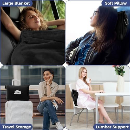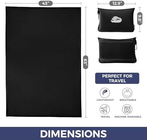 TRAVEL BLANKET OVERSIZED:The plane travel essentials extra-large size of 63 “x43” flexibly fits your body, and the travel blanket compact folds to easily tuck into a travel bag or backpack. You can take the blanket out and stuff a jacket in the outer bag and use it as a pillow. The Travel Blanket is a lightweight, extra-comfy all-season blanket that is the perfect travel companion.