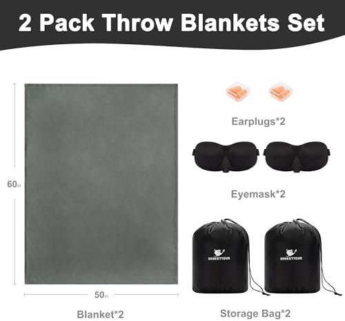 Thoughtful Combination: Our travel blanket set contains two sets of travel blankets, and sleeping accessories: 2 sleep masks two earplugs, and two portable bags.