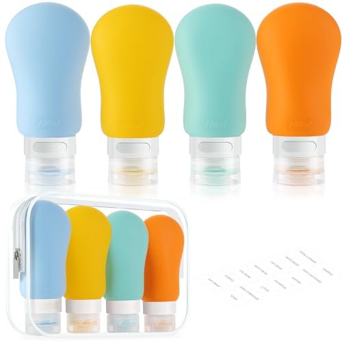 【Odorless 4 Color Silicone Travel Size Toiletries】 Made of high quality silicone, you can use these travel toiletry bottles to store shampoo, liquid soap, sunscreen, hairspray and gels, lotions, creams, and more. The silicone material keeps these travel shampoo and conditioner bottles from reacting to the liquids it contains. Also, 4 colours and 14 labels choices make it easy to distinguish between different fillings.
