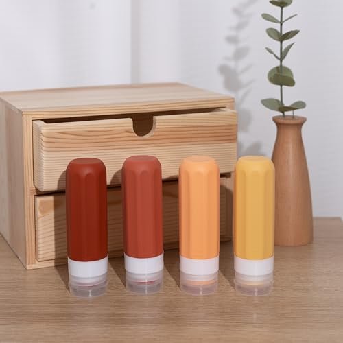 TRAVEL BOTTLES FOR TOILETRIES : 3oz Capacity, Refillable Liquid Silicone Containers- Pack of 4
