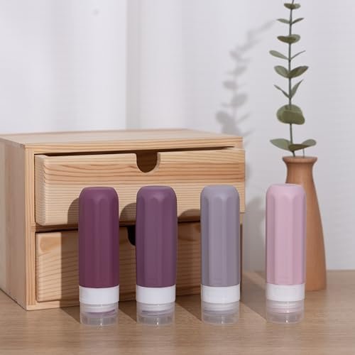 TRAVEL BOTTLES FOR TOILETRIES : 3oz Capacity, Refillable Liquid Silicone Containers- Pack of 4