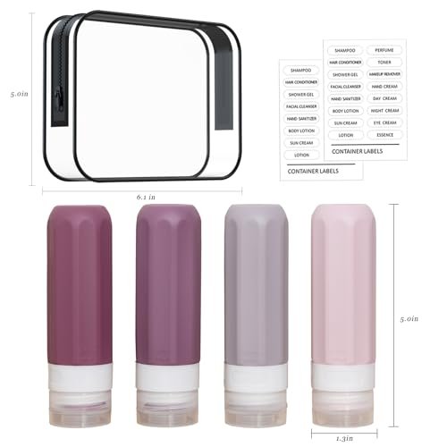 Each package contains 4 travel bottles ,one zipper pouch, two Label Stickers.